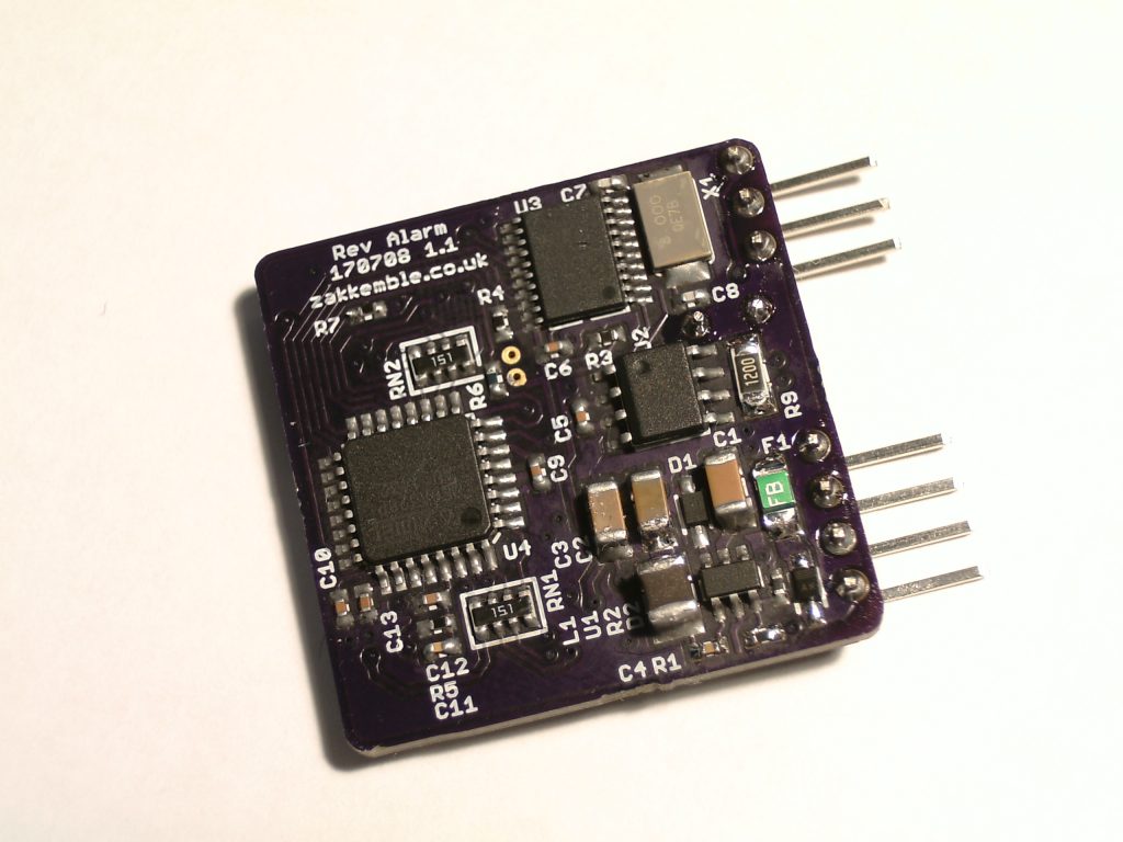 As the OBD port is always powered, even when the vehicle is off, the usual low power sleep features had to be coded in so that the car doesn’t end up with a dead battery. Most of the electronics in the rev alarm draw no more than 70uA in sleep, however the buck regulator draws around 2.7mA. This is a little higher than I was hoping for, but it’s still low enough not to drain the battery for a long time.