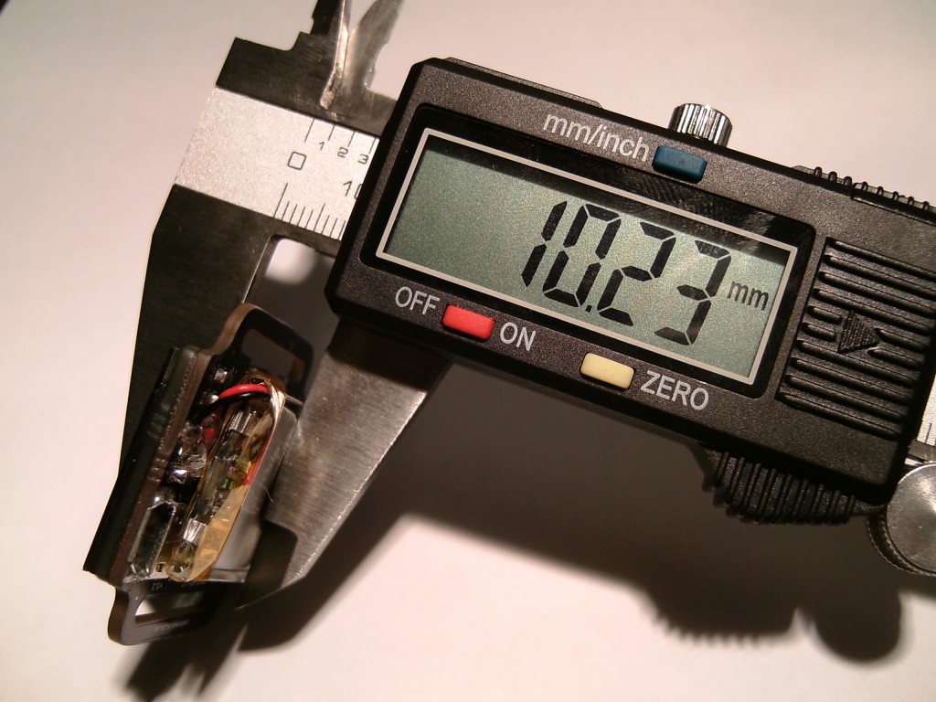 You might have noticed in the schematic that the LEDs are directly connected to the microcontroller without any resistors. The internal MOSFETs of the microcontroller have an on resistance of around 40Ω, so with a 2.5V supply voltage and LEDs with 2Vf, around 12.5mA ends up through the LEDs. I would have liked to have a blue LED, but the voltage drop for those are usually more than 3V which would have required some additional resistors and a MOSFET.