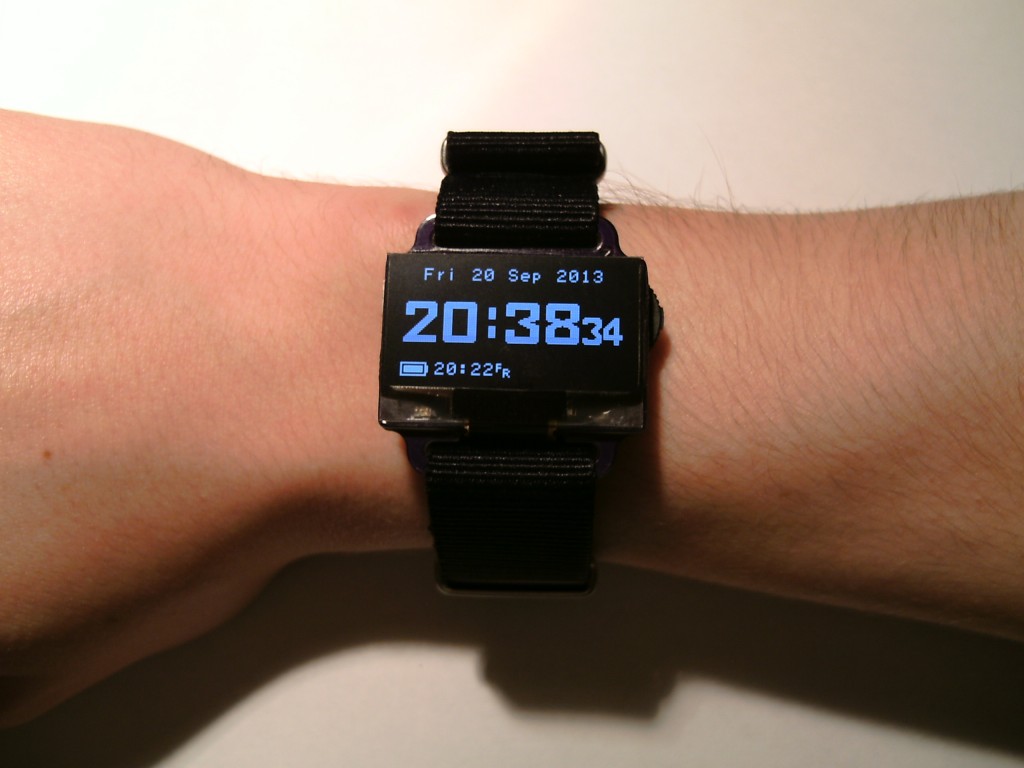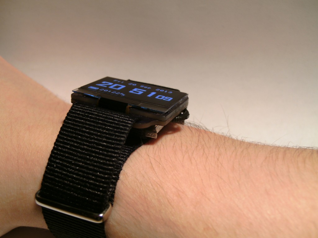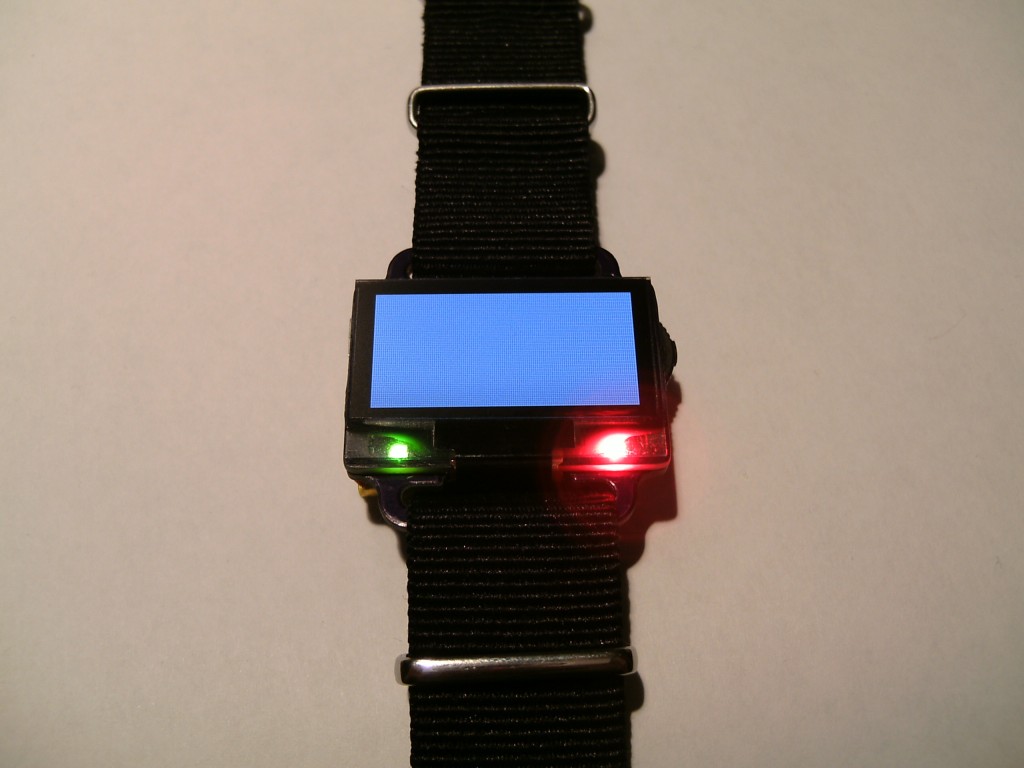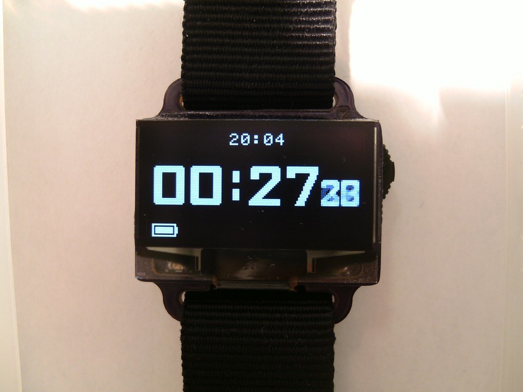 The main incentive behind this project was to see how much I could cram, in terms of both hardware and software, into a wristwatch-like device that is no larger than the display itself. An OLED display was chosen for being only 1.5mm thick and not requiring a backlight (each pixel produces its own light), but mostly because they look cool. The watch was originally going to have a 0.96″ display, but this proved too difficult to get all the things I wanted underneath it. Going up a size to 1.3″ was perfect.